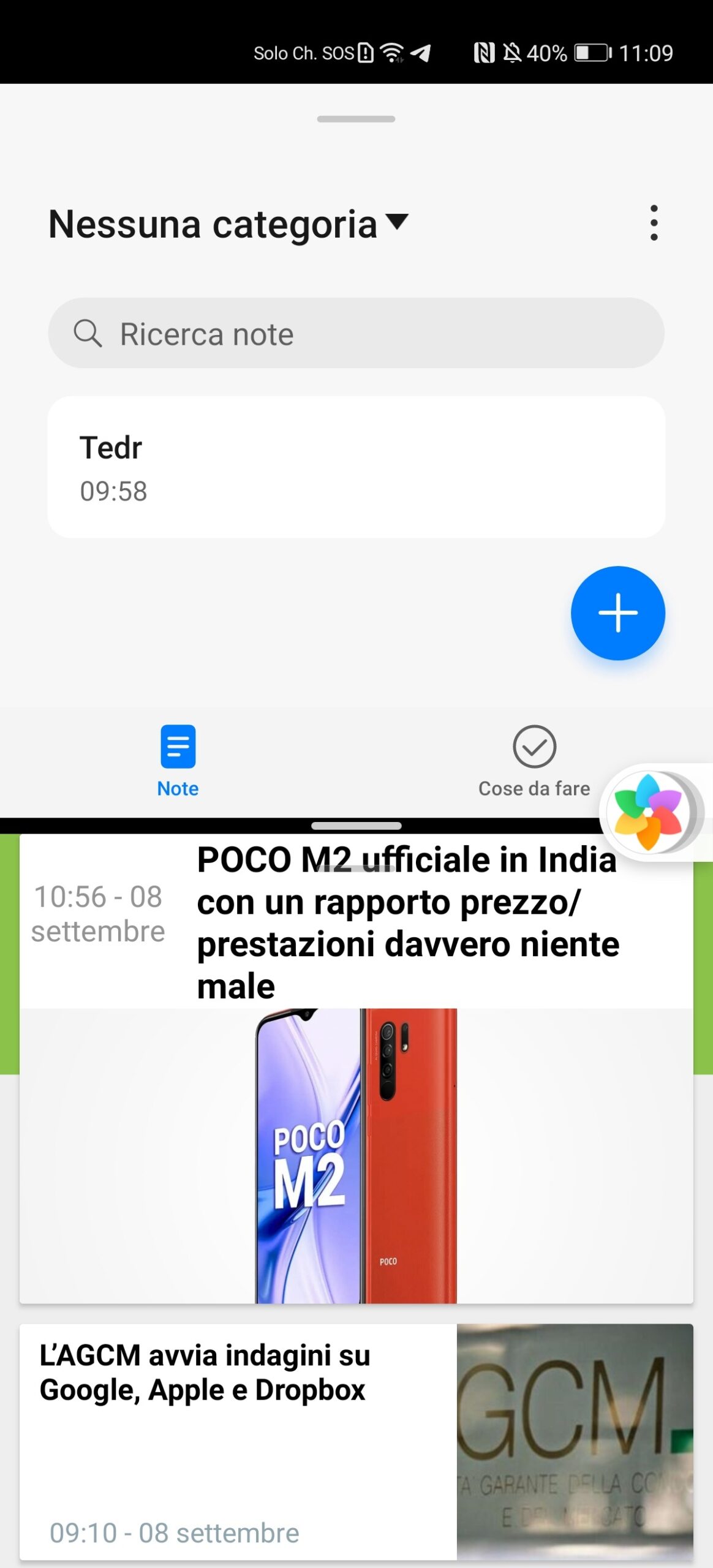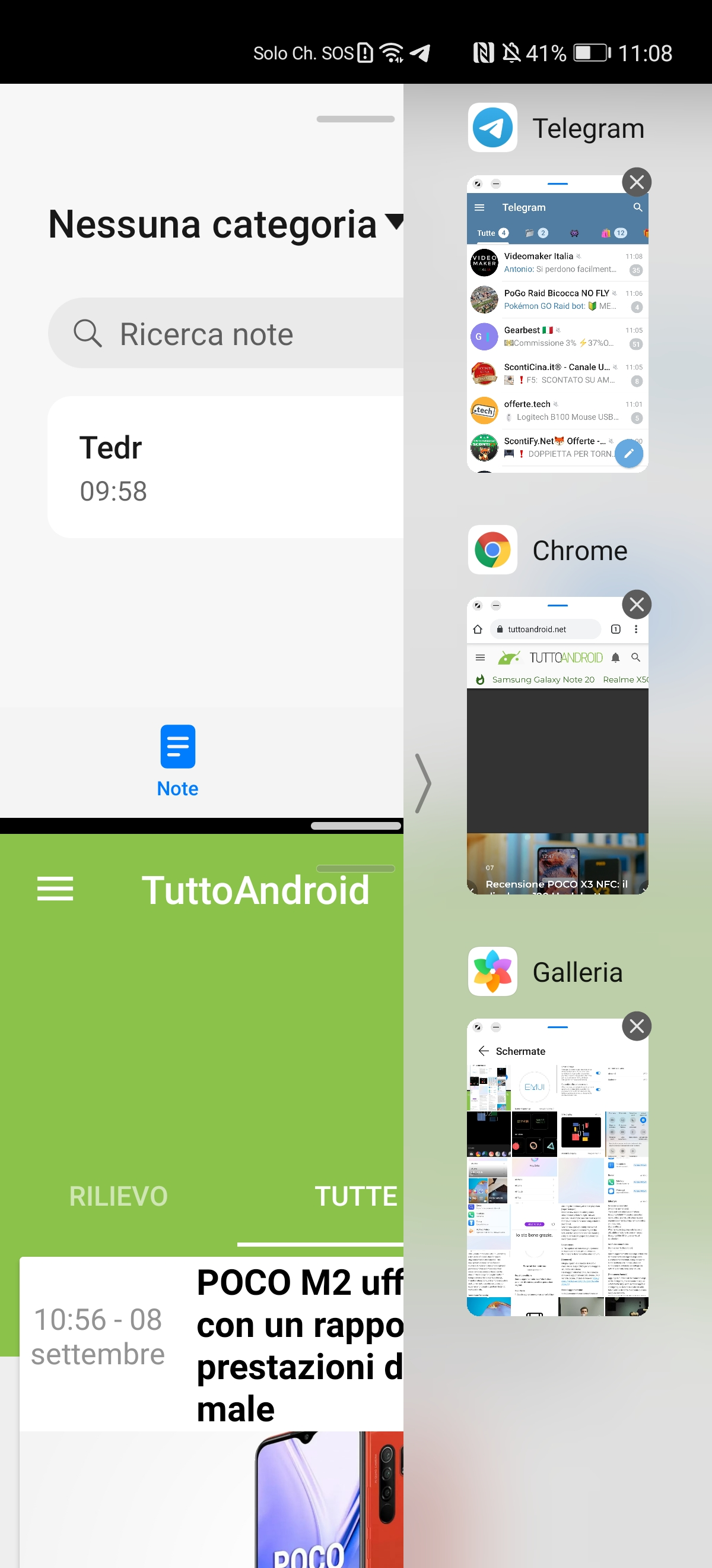 La dimensione delle finestre galleggianti può essere modificata a piacere trascinando uno dei due angoli inferiori, toccando la barra superiore è possibile spostare la finestra ed è possibile ridurle a icona toccando l’apposito tasto. Le finestre ridotte a icona possono essere riaperte toccando l’icona visibile sul lato desto, che aprirà l’elenco di tutte le app minimizzate.