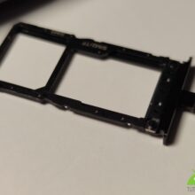 Anche la cover posteriore è in plastica gommata, con due inserti “carbon look” e l’inserto circolare per la fotocamera in metallo con una zigrinatura molto piacevole alla vista e al tatto. Nella parte inferiore della cover è presente un leggero rialzo che dovrebbe permettere al suono, proveniente da una feritoia poco più in alto, di uscire al meglio. Della qualità audio però ci parlerò tra poco.