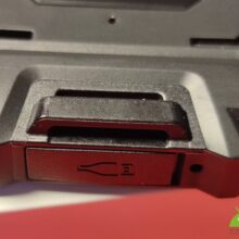 Un po’ caotica la disposizione dei tasti e dei connettori, ai quali comunque ci si abitua abbastanza in fretta. Nella parte alta, protetto da uno sportellino di gomma, è presente il connettore da 3,5 mm per le cuffie. Sul lato destro troviamo, partendo dall’alto, il carrellino della SIM, protetto da uno sportellino in gomma. Il carrellino può essere rimosso senza strumenti, grazie a una piccola sporgenza da tirare con l’unghia. Subito sotto ecco il tasto di accensione/sblocco e appena sotto il lettore di impronte digitali, che poteva essere integrato nel tasto di accensione per risparmiare spazio.