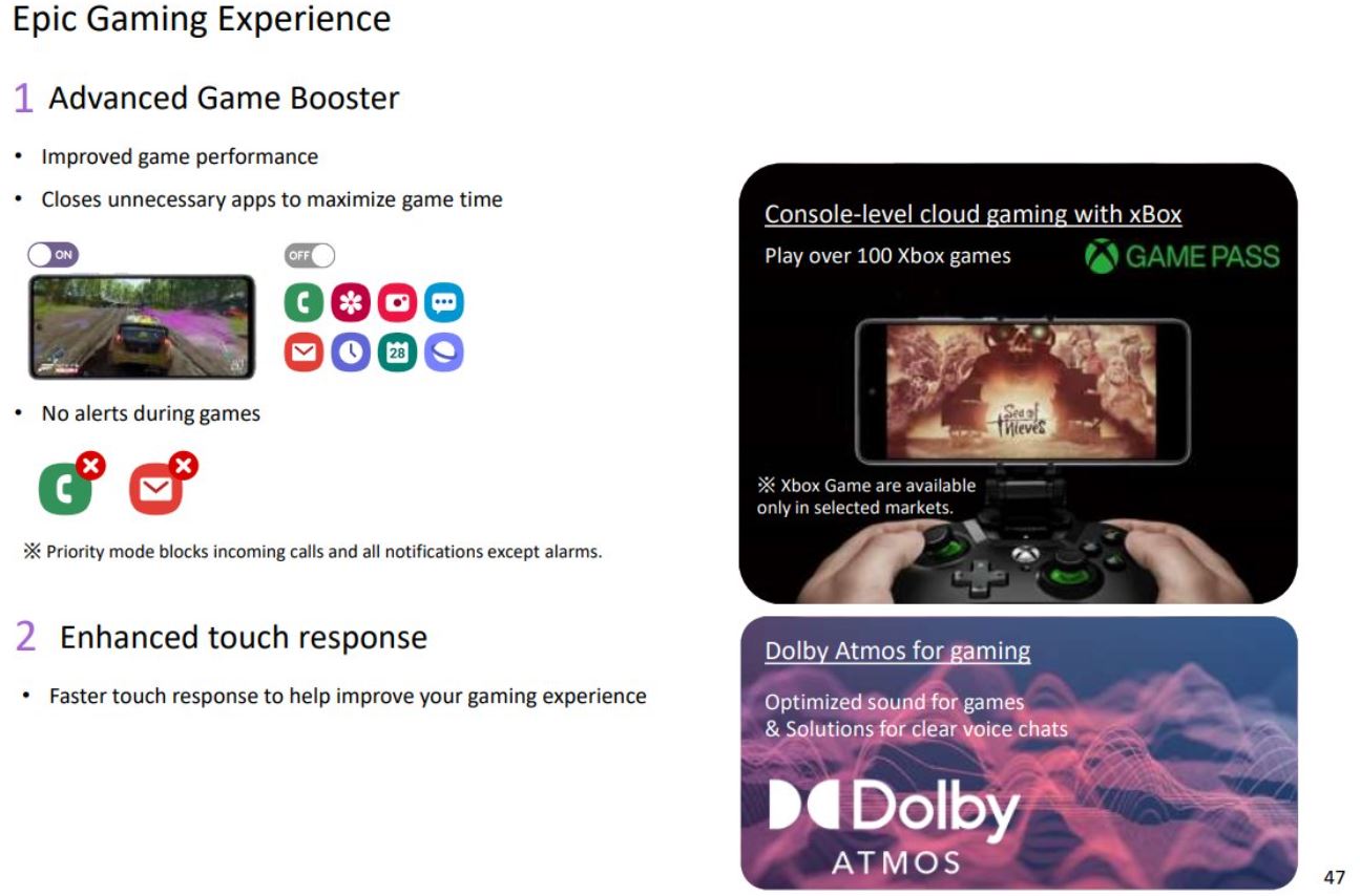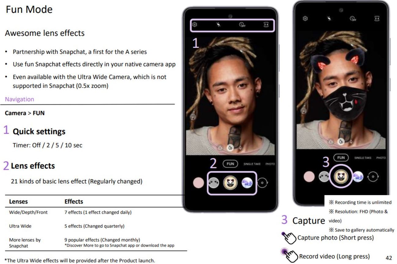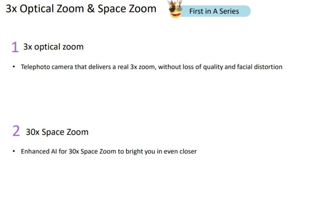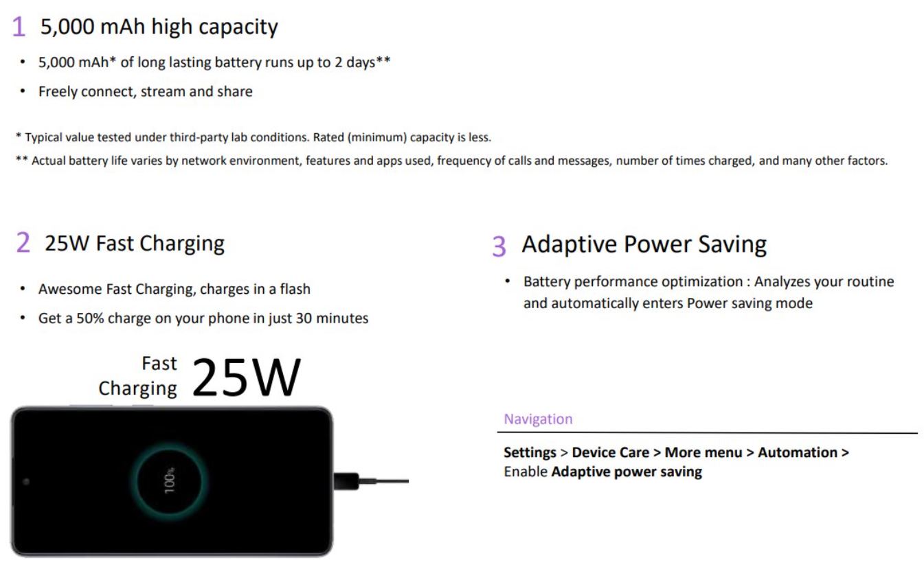 Il modello più piccolo potrà invece contare su un display Super AMOLED da 6,5 pollici con refresh rate a 90 Hz (modello 4G) o 120 Hz (modello 5G), un processore Qualcomm Snapdragon 720G (modello 4G) o Qualcomm Snapdragon 750G (modello 5G), 4 GB, 6 GB o 8 GB di RAM e 128 GB o 256 GB di memoria integrata, una quadrupla fotocamera posteriore (con sensore primario da 64 megapixel, ultra grandangolare da 12 megapixel, di profondità da 5 megapixel e macro da 5 megapixel), una fotocamera frontale da 32 megapixel, una batteria da 4.500 mAh (con supporto alla ricarica rapida a 25 W) e una scocca con certificazione IP67.