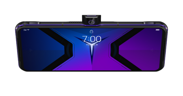 Sono proprio le due ventole interne ad aver dettato il design dello smartphone, con la fotocamera frontale di tipo pop-up posizionata al centro del lato lungo e un grosso rilievo nella parte posteriore, dove trovano posto la doppia fotocamera e le feritoie per lo sfogo dell’aria calda prodotta dai componenti interni. A questo proposito oltre alla doppia ventola il raffreddamento è delegato a quattro pad termici in grafite e a una camera di vapore, che secondo Lenovo è la più grande mai vita su uno smartphone.