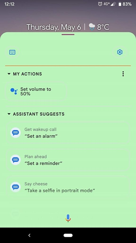 Inoltre, sembra che le nuove colorazioni andranno ad interessare anche la UI generale di Google Assistant, in cui tutto il pannello dell’interfaccia, così come i tasti a schermo, cambiano tonalità di colore in modo da allinearsi a quelli generali. Piccola curiosità: Pirszel è riuscito anche ad attivare la funzione My Actions di cui abbiamo parlato qualche settimana fa. Come avevamo previsto, tramite essa sarà possibile utilizzare alcune scorciatoie per eseguire un comando con un semplice tap, come ad esempio impostare il volume generale al 50%.