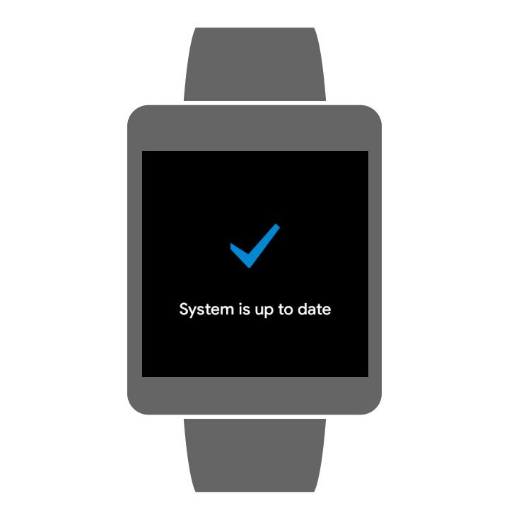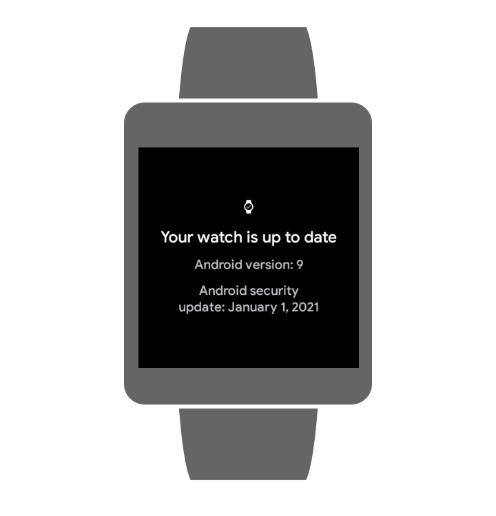 La precedente UI con una spunta blu e la dicitura “System is up to date” lascia il posto ad una nuova schermata: in alto è presente una piccola icona a forma di orologio, segue la dicitura “Your watch is up to date“; la sostanza è la stessa, ma sono presenti anche delle informazioni in più, ovvero la versione di Android installata (“Android version”) e quella delle patch di sicurezza (“Android security update”). Questo nuovo approccio è sicuramente più chiaro e meno confusionario di quello attuale descritto poco sopra.