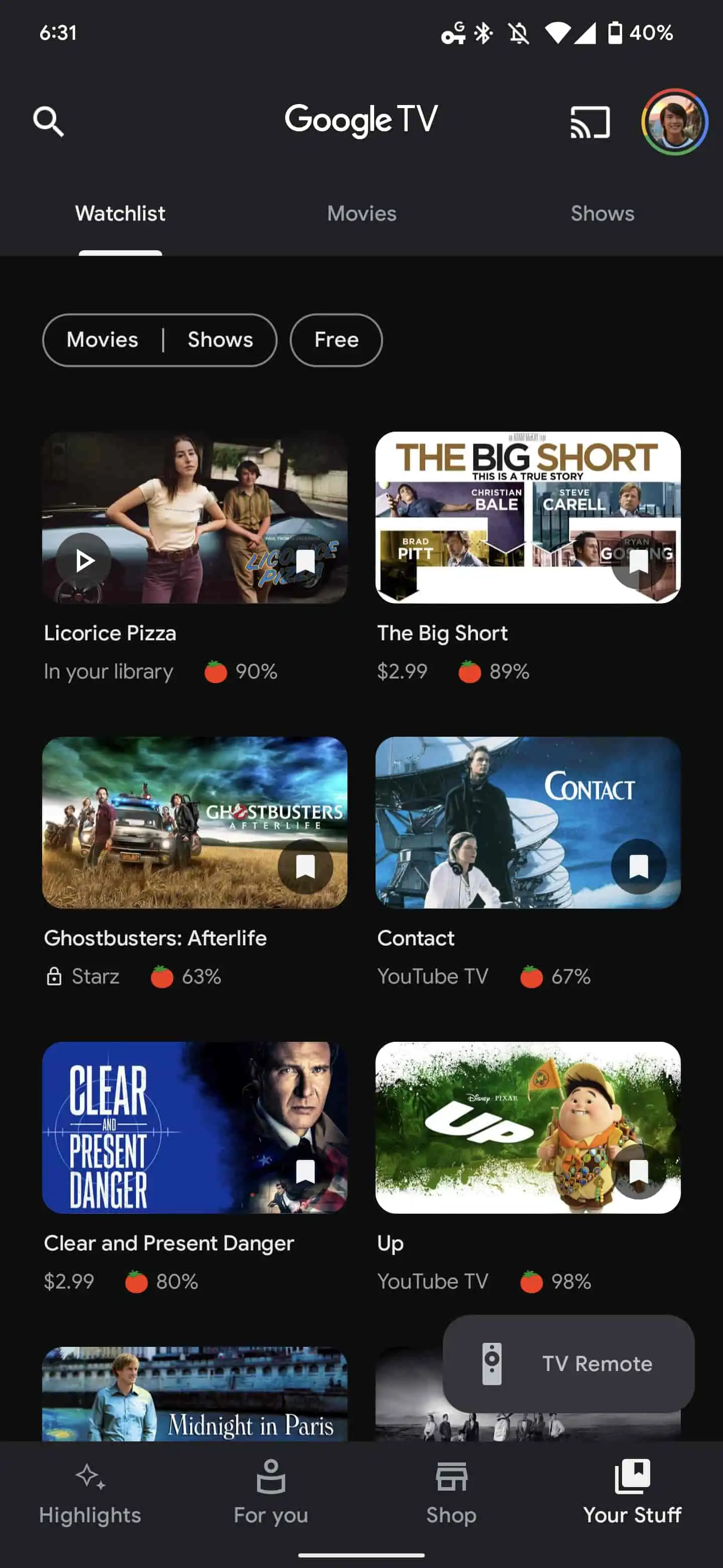 L’altro grande cambiamento attiene ai tab “Raccolta” e “Lista di titoli”, i quali non sono più due tab separati, ma vengono accorpati in “Your Stuff”. Nel nuovo layout di Google TV, quest’ultimo tab presenta poi un’articolata organizzazione interna: nella parte alta, infatti, sono presenti i tre tab “Lista di titoli”, “Film” e “Programmi” che permettono di filtrare i contenuti tra cui navigare. Se da una parte questa è una semplice opera di riorganizzazione, con parti dell’app banalmente spostate in altri punti dell’app ma rimaste di fatto invariate, non si può negare la minore comodità e immediatezza della nuova interfaccia utente, che rende sicuramente meno immediato l’accesso alla Raccolta e, dunque, la navigazione tra i propri contenuti.