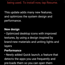 - Newly added Quick launch, a feature that detects the apps you use frequently and pre-loads them so you can open them quickly