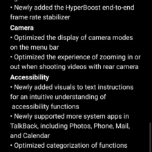 - Newly supported more system apps in TalkBack, including Photos, Phone, Mail, and Calendar