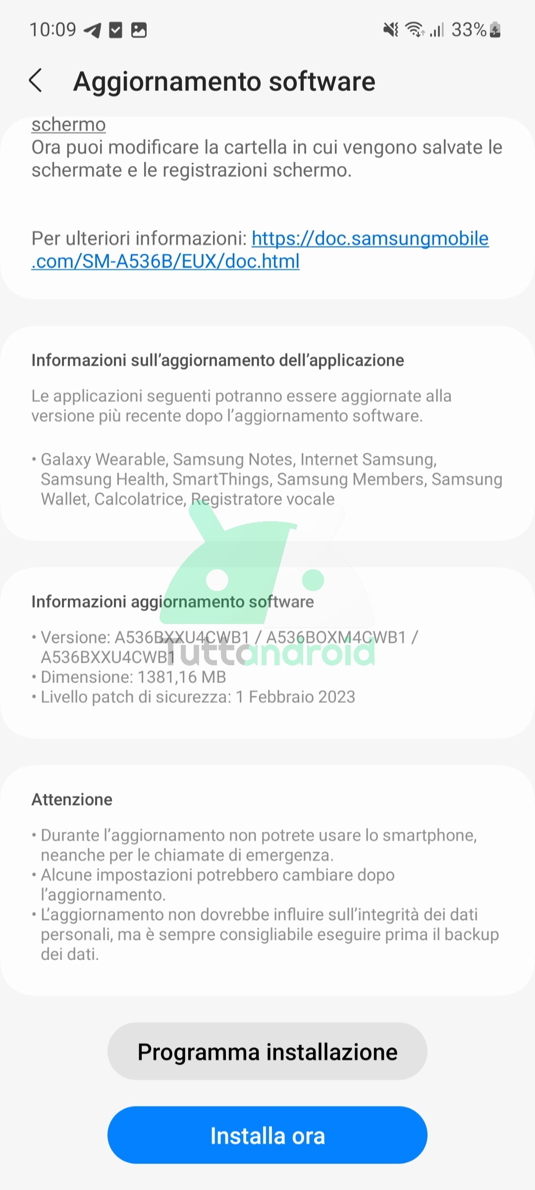 grazie a Kristian M. per la segnalazione e lo screenshot di Galaxy A53
