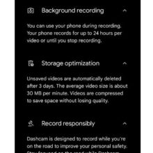 Così come suggerisce il suo nome, tale funzione permette di registrare video (e, in via opzionale, anche audio) mentre si sta guidando e, con il telefono montato nel punto giusto, dovrebbe essere in grado di fornire informazioni utili in caso di incidente o di altra situazione imprevista.