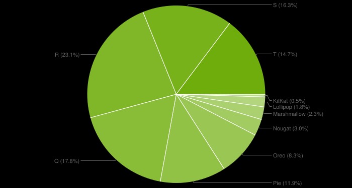 Nonostante un aumento modesto, Android 13 continua a guadagnare terreno. Da aprile a giugno la sua quota di mercato è passata dal 12,1% al 14,7%. Nonostante questo incremento, Android 11 mantiene la sua posizione di dominio, essendo presente sul 23,1% dei dispositivi in tutto il mondo, nonostante un lieve calo rispetto ai mesi precedenti (ad aprile 2023 la quota di mercato era di 23,5%).