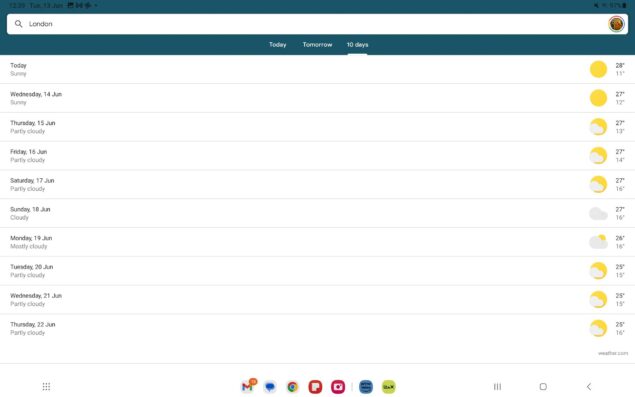 Quando il tablet viene poi ancorato alla sua dock, l’esperienza utente risulta piuttosto deludente: in modalità Hub, toccando le condizioni meteorologiche correnti non si apre la nuova app meteo (a meno che non si sblocchi il dispositivo), e se si chiedono a Google Assistant le previsioni del tempo, le informazioni vengono fornite tramite la vecchia interfaccia Meteo dei Nest Hub.