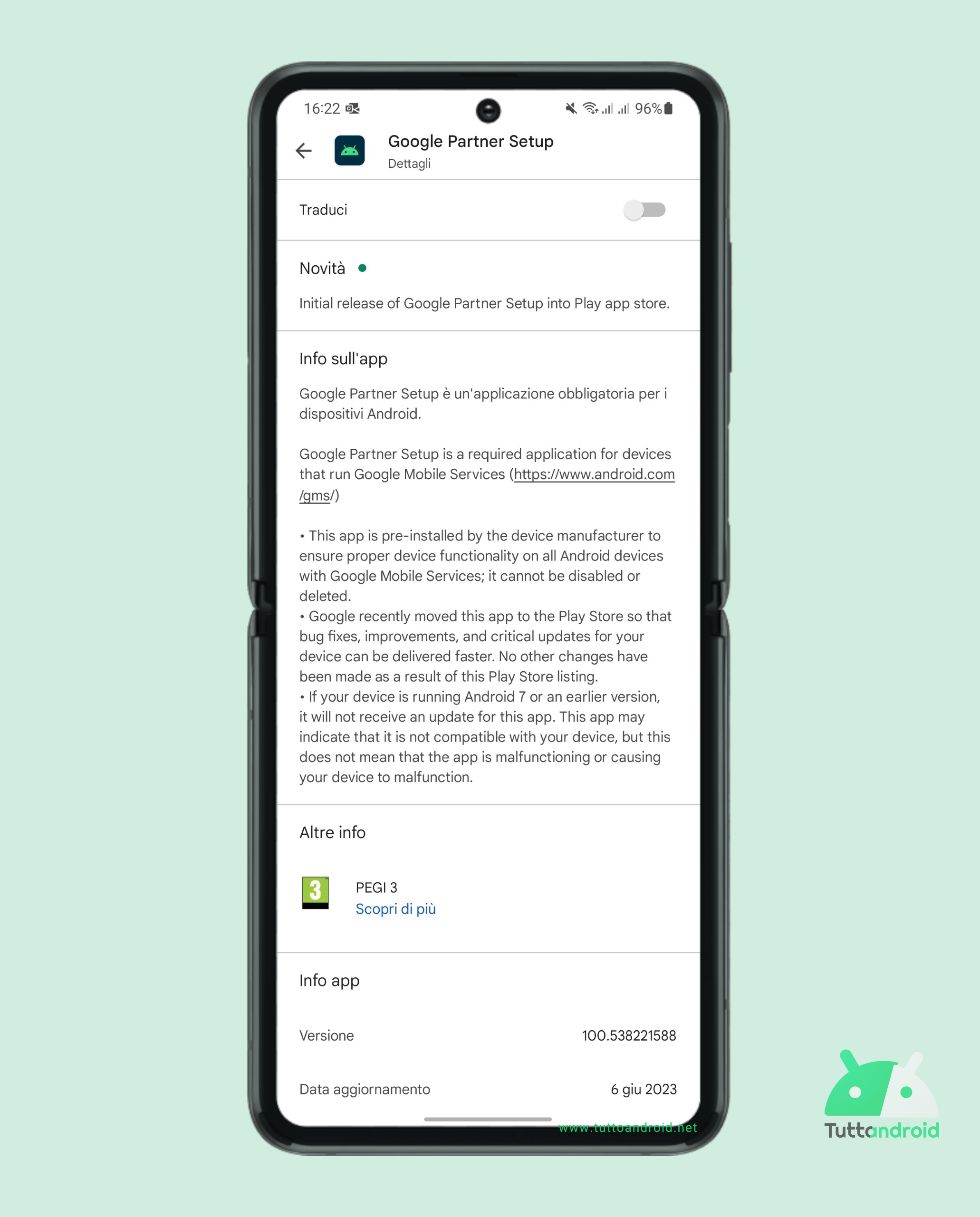 Recentemente molti utenti in possesso di uno smartphone Android hanno iniziato a visualizzare la disponibilità, sul Play Store, di un aggiornamento per l’app chiamata Google Partner Setup (ad esempio nel mio caso specifico mi è comparso su Samsung Galaxy Z Flip3 5G).