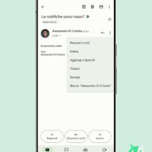 Utilizzare la nuova funzione di traduzione delle mail su Gmail è un’operazione molto semplice (illustrata nella galleria sottostante): innanzitutto è necessario aprire la mail che si desidera tradurre; una volta dentro, basterà selezionare la voce “Traduci” dal menu contestuale (che si apre effettuando un tap sui tre pallini presenti all’estrema destra della riga del mittente).