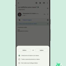 A questo punto Gmail tradurrà la mail nella lingua di sistema, preoccupandosi di rilevare automaticamente la lingua originale della mail stessa (apparirà un banner apposito che segnala la traduzione e consente di rivedere la mail originale): l’utente potrà comunque scegliere manualmente sia la lingua da cui tradurre che quella in cui tradurre.