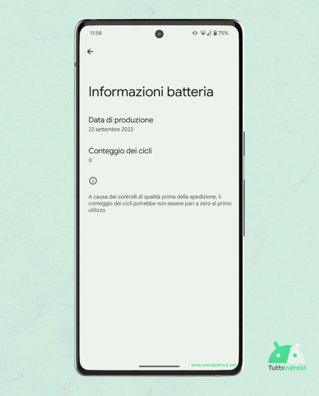 Al percorso “Impstazioni > Informazioni sullo smartphone” è stato aggiunto il nuovo menu “Informazioni batteria”: questo, mostra la data di produzione del dispositivo e il conteggio di cicli della batteria.