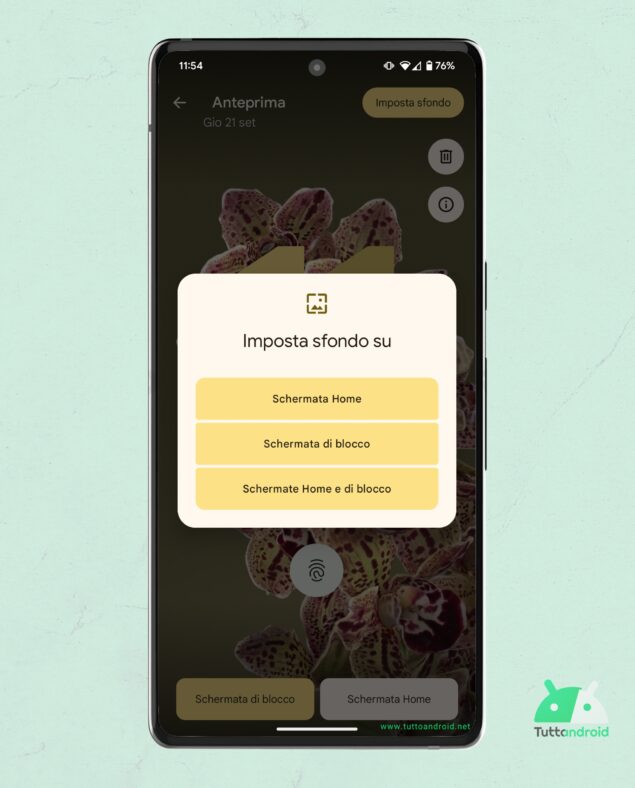 Come potete apprezzare dall’immagine sottostante, ho impostato uno degli sfondi della collezione “Fioritura animata” sulla schermata di blocco e uno degli sfondi della collezione “Universo in evoluzione” sulla schermata iniziale: l’app, adesso, propone infatti l’opzione di impostare lo sfondo animato su entrambe le schermate o solo su una delle due.