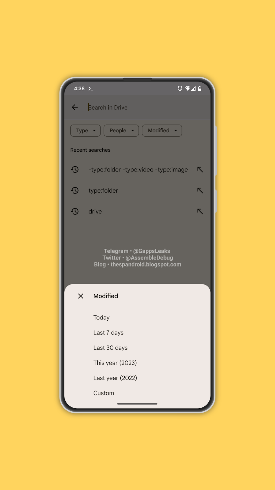 Per risolvere i problemi e rendere l’interfaccia di ricerca più comoda e funzionale, Google Drive potrebbe presto dire addio ai “chip” e dare il benvenuto a tre filtri (tipo di file, persone, ultima modifica) che aprono dei sotto-menu a comparsa per selezionare tutti i tipi di file desiderati, solo i file provenienti da persone specifiche, solo i file modificati in certi intervalli di tempo (anche personalizzabili).