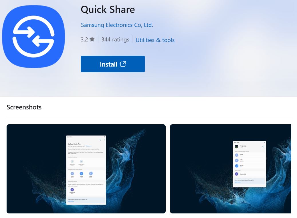 L’app Quick Share per Windows può essere scaricata gratuitamente dal Microsoft Store (potete trovare la pagina dedicata seguendo questo link).
