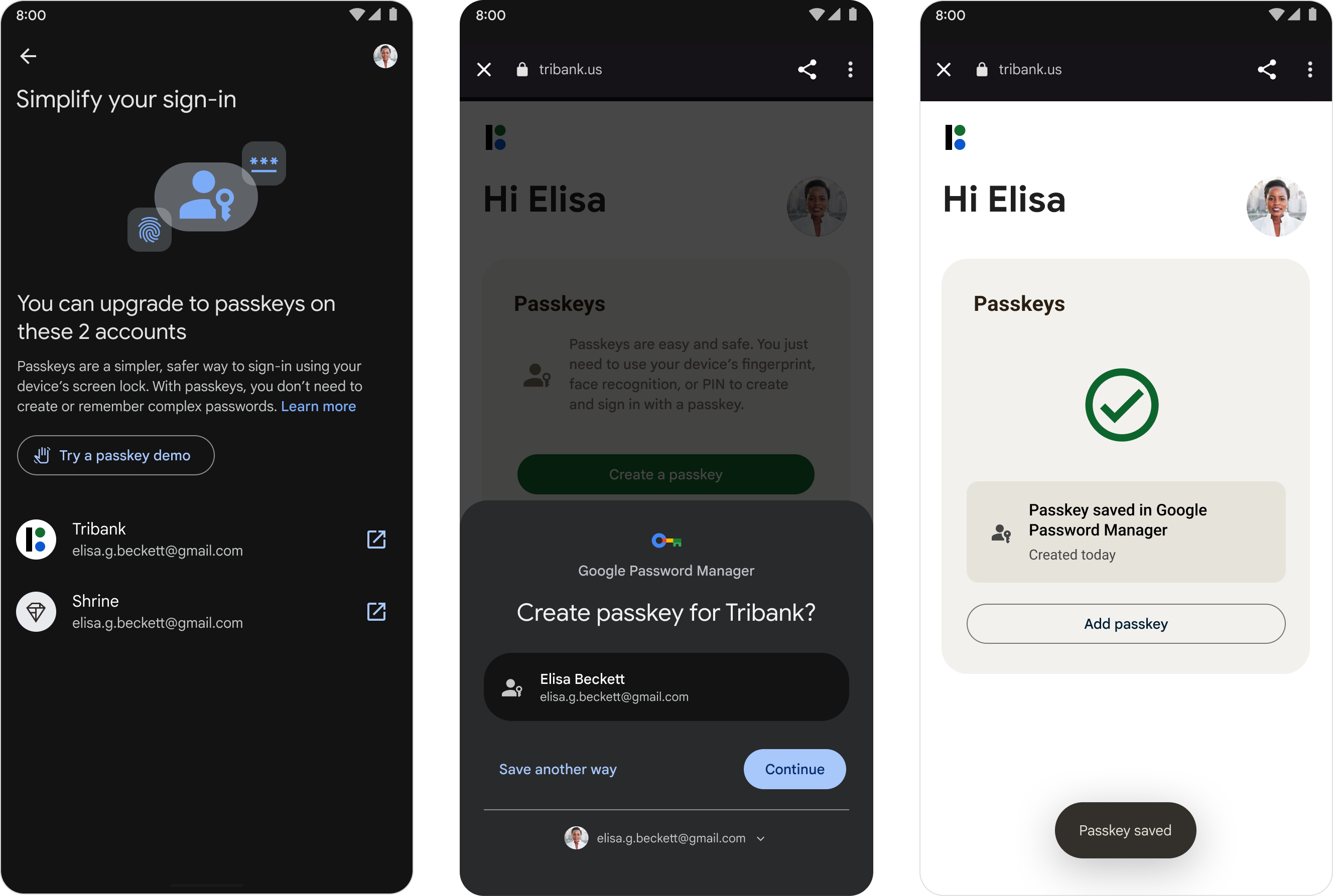 Il team di Google ci tiene a ricordare che le passkey sono più sicure, in quanto sono univoche per ciascun account, sono più resistenti agli attacchi online (come ad esempio il phishing) e sono più facili da usare, non essendoci nulla da ricordare (quando è il momento di accedere, usare una passkey è semplice come sbloccare il dispositivo con il viso o l’impronta digitale oppure con il PIN).
