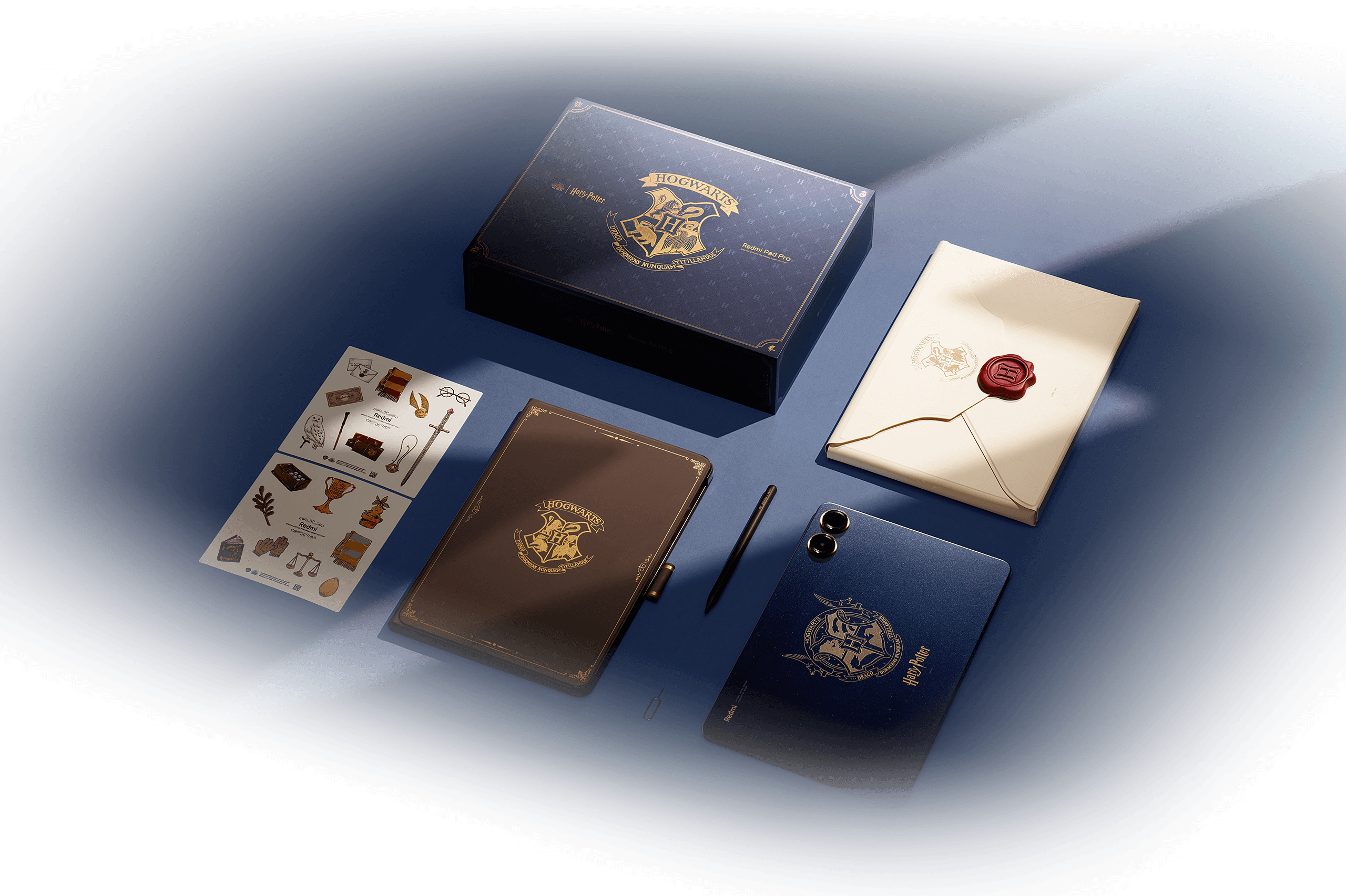 Come anticipato dalle indiscrezioni dei giorni scorsi, Redmi Pad Pro viene commercializzato anche in una versione speciale dedicata al mondo di Harry Potter. Questa variante “magica” offre una parte posteriore caratterizzata da un ampio logo di Hogwarts (con incisione laser e doppio processo di anodizzazione) con i simboli delle quattro Case e da dettagli dorati (anche intorno ai due “oblò” fotografici); viene proposta con una particolare custodia con chiusura magnetica che riporta alle forme della lettera di ammissione alla celebre Scuola di magia e stregoneria, con un pennino stilo personalizzato che ricorda una bacchetta magica, con una cover a libro e con una speciale confezione. In più, integra adesivi a tema e sfondi dedicati.