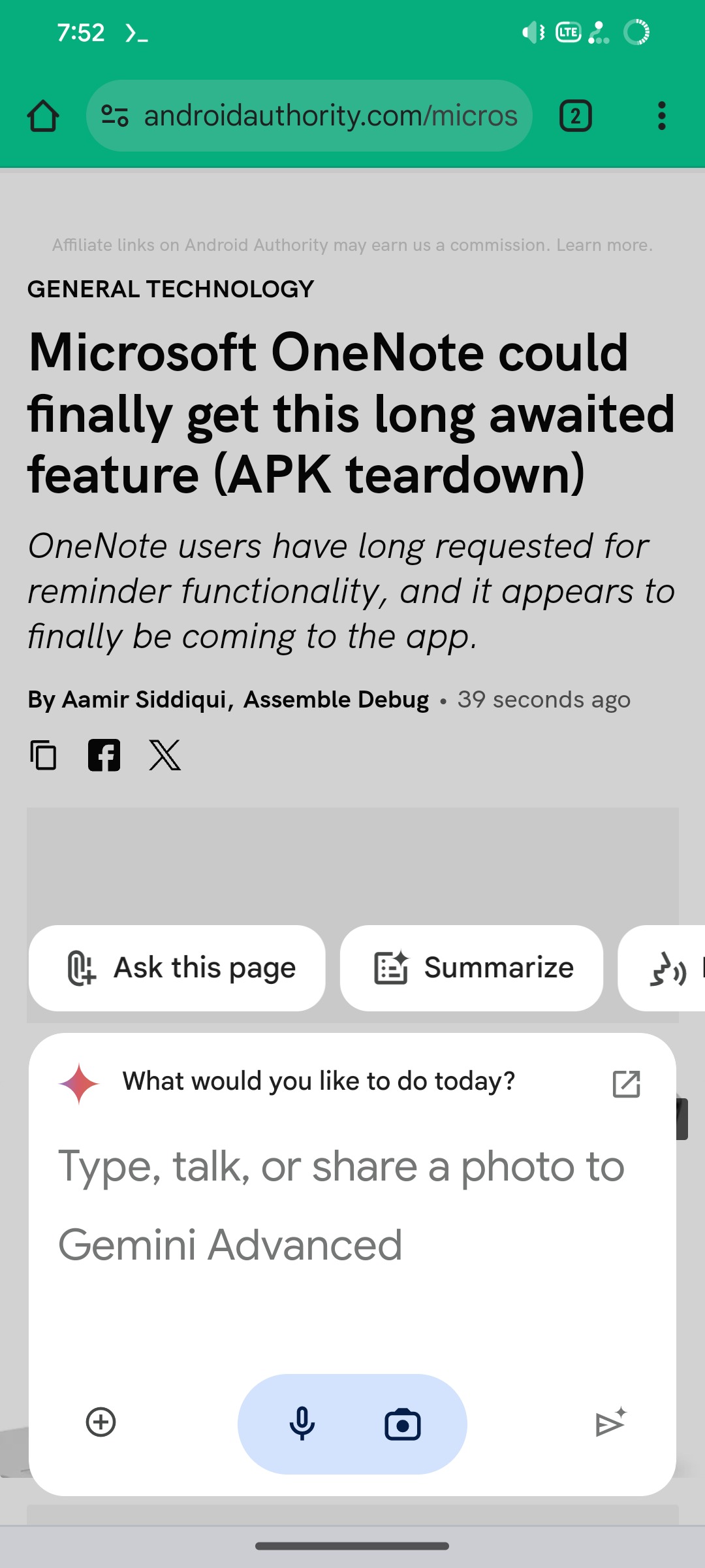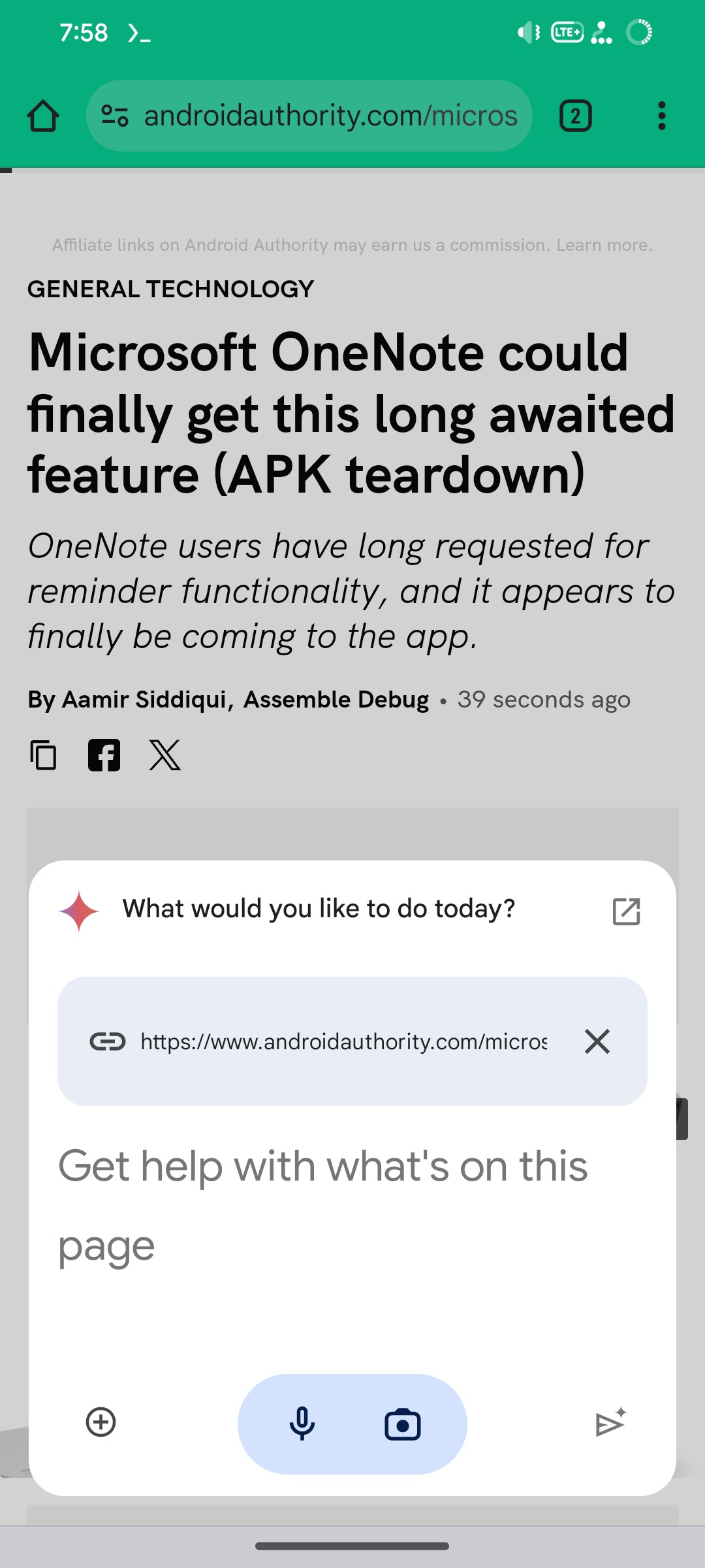 Come possiamo vedere, per attivare Ask this page basta aprire l’overlay Gemini mentre si guarda una qualsiasi pagina web sullo smartphone Android tenendo premuto il pulsante di accensione. Gemini, consapevole del contesto, può comprendere che stiamo visualizzando una pagina web e mostrare apposite funzionalità. Toccando proprio Ask this page, l’assistente procede ad analizzare la pagina (il tempo dipende dalla lunghezza e dalla complessità) e una volta pronto mostra una casella di testo corrispondente, che offre aiuto.