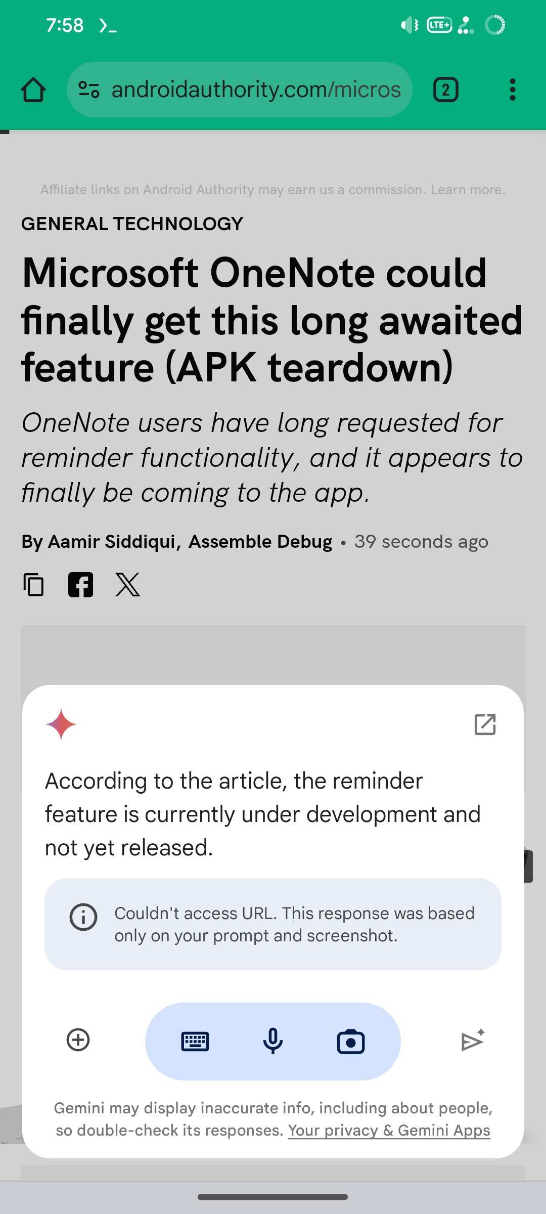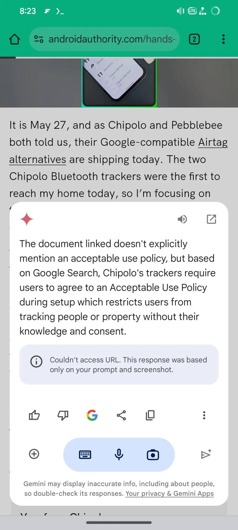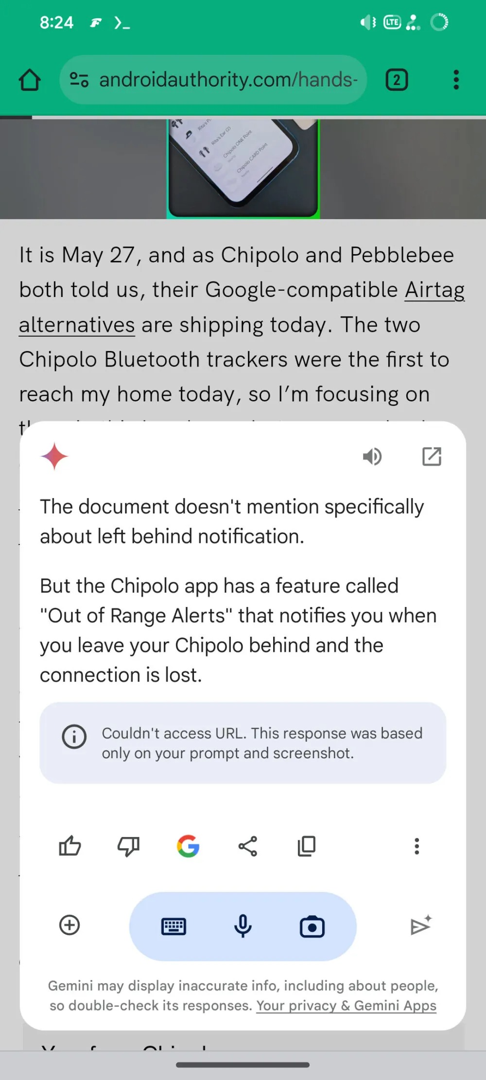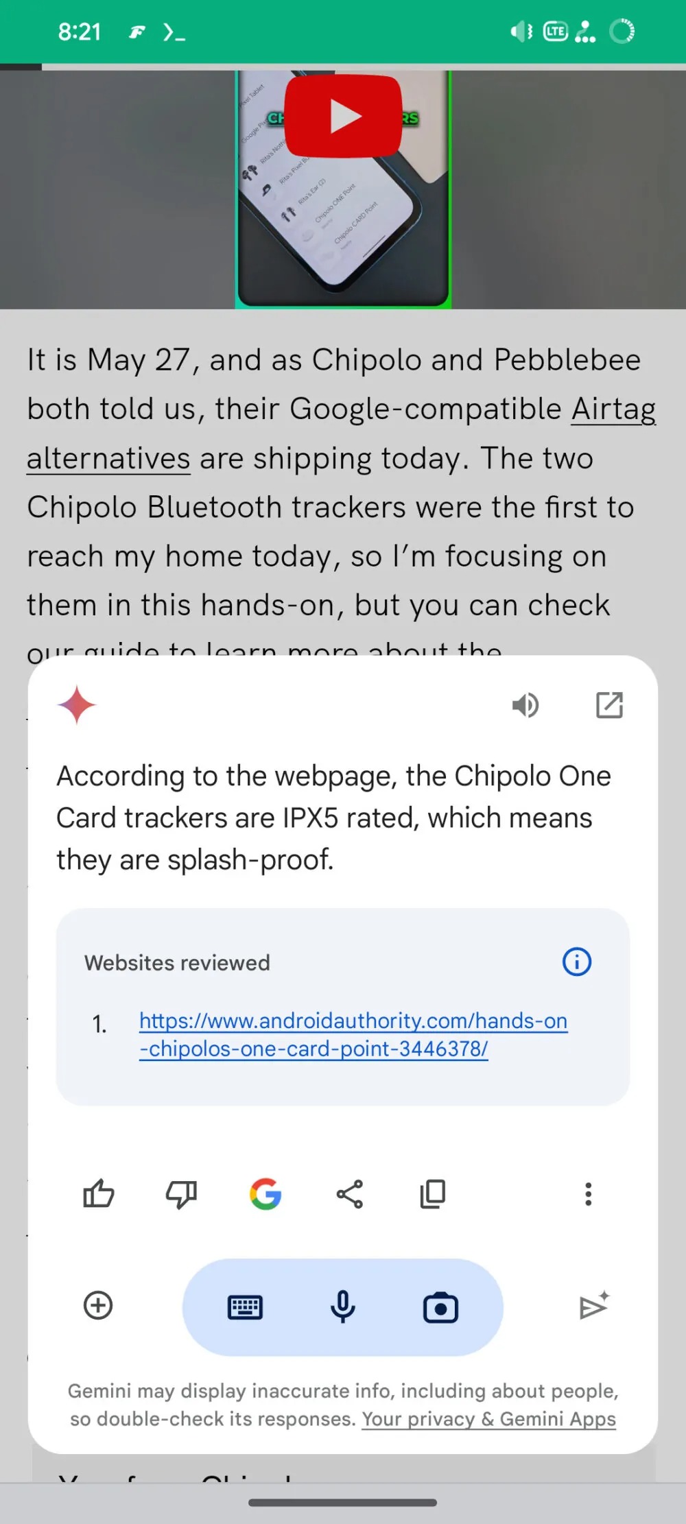 In un ulteriore test, la fonte ha provato a vedere se Gemini è capace di raccogliere informazioni dall’intera pagina, comprese immagini, tabelle, commenti e così via. Alla prima domanda fatta, la cui risposta si trova in uno screenshot, l’IA non ha saputo rispondere, ma ha comunque provato ad eseguire una ricerca sul web per fornire le informazioni richieste, facendo un po’ di “confusione”. Con la seconda domanda, riguardante la resistenza all’acqua del dispositivo oggetto dell’articolo preso per il test, l’assistente IA è stato in grado di trovare la risposta senza problemi all’interno di una tabella (che include la dicitura “IPX5”). Niente da fare invece per i commenti: anche questa volta, Gemini non ha trovato la risposta e si è messo a cercare in Rete.