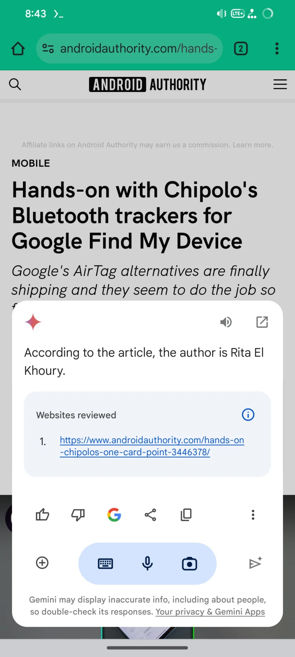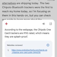 In un ulteriore test, la fonte ha provato a vedere se Gemini è capace di raccogliere informazioni dall’intera pagina, comprese immagini, tabelle, commenti e così via. Alla prima domanda fatta, la cui risposta si trova in uno screenshot, l’IA non ha saputo rispondere, ma ha comunque provato ad eseguire una ricerca sul web per fornire le informazioni richieste, facendo un po’ di “confusione”. Con la seconda domanda, riguardante la resistenza all’acqua del dispositivo oggetto dell’articolo preso per il test, l’assistente IA è stato in grado di trovare la risposta senza problemi all’interno di una tabella (che include la dicitura “IPX5”). Niente da fare invece per i commenti: anche questa volta, Gemini non ha trovato la risposta e si è messo a cercare in Rete.