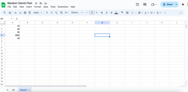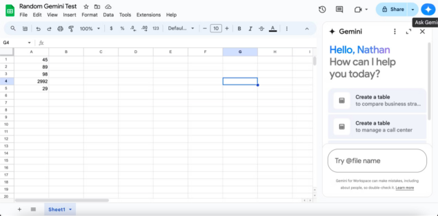 - Cliccare sull’icona di Gemini in alto a destra di Google Fogli.