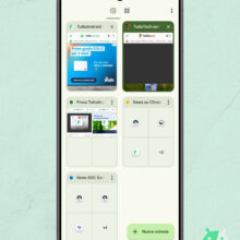 Il FAB (Floating Action Button, ovvero il pulsante “flottante”) non cambia la sostanza o il funzionamento, andando esclusivamente a sostituire a sostituire il “+ Nuova scheda” (precedentemente collocato in alto a sinistra) nella schermata con le schede e i gruppi di schede aperti. Come potete vedere dalla prima immagine della seguente galleria, il nuovo pulsante flottante segue è compatibile coi colori dinamici.