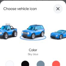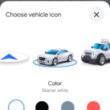 Ora ci sono le prove che Google sta lavorando per introdurre nuove icone di navigazione selezionabili, tra le quali una berlina, un camion, un SUV, un’auto sportiva e una berlina compatta. Google sta testando anche la possibilità di personalizzare i colori dei nuovi segnalini attraverso otto opzioni di colore: bianco ghiaccio, nero, grigio, rosso, azzurro, giallo, verde e magenta.