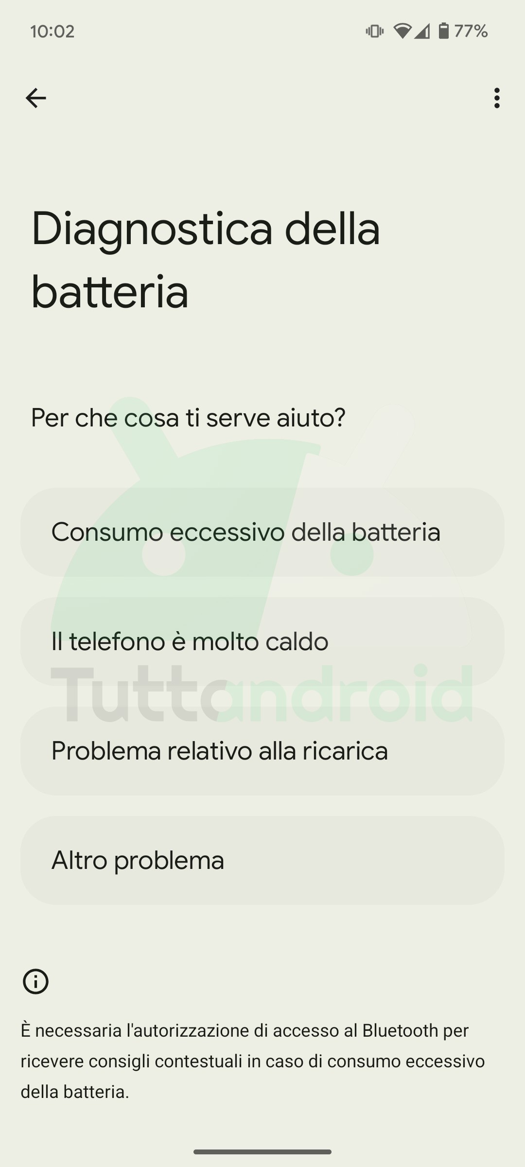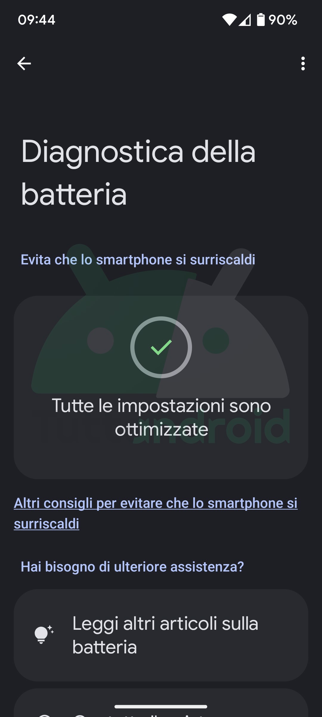In seguito all’update noterete come, seguendo il percorso Impostazioni -> Batteria -> Diagnostica della batteria -> Il telefono è molto caldo, l’app presenti una nuova schermata, dove in precedenza era visibile solo l’indicazione “Tutte le impostazioni sono ottimizzate” (potete vedere quella vecchia nell’immagine con tema scuro nella galleria qui sotto).