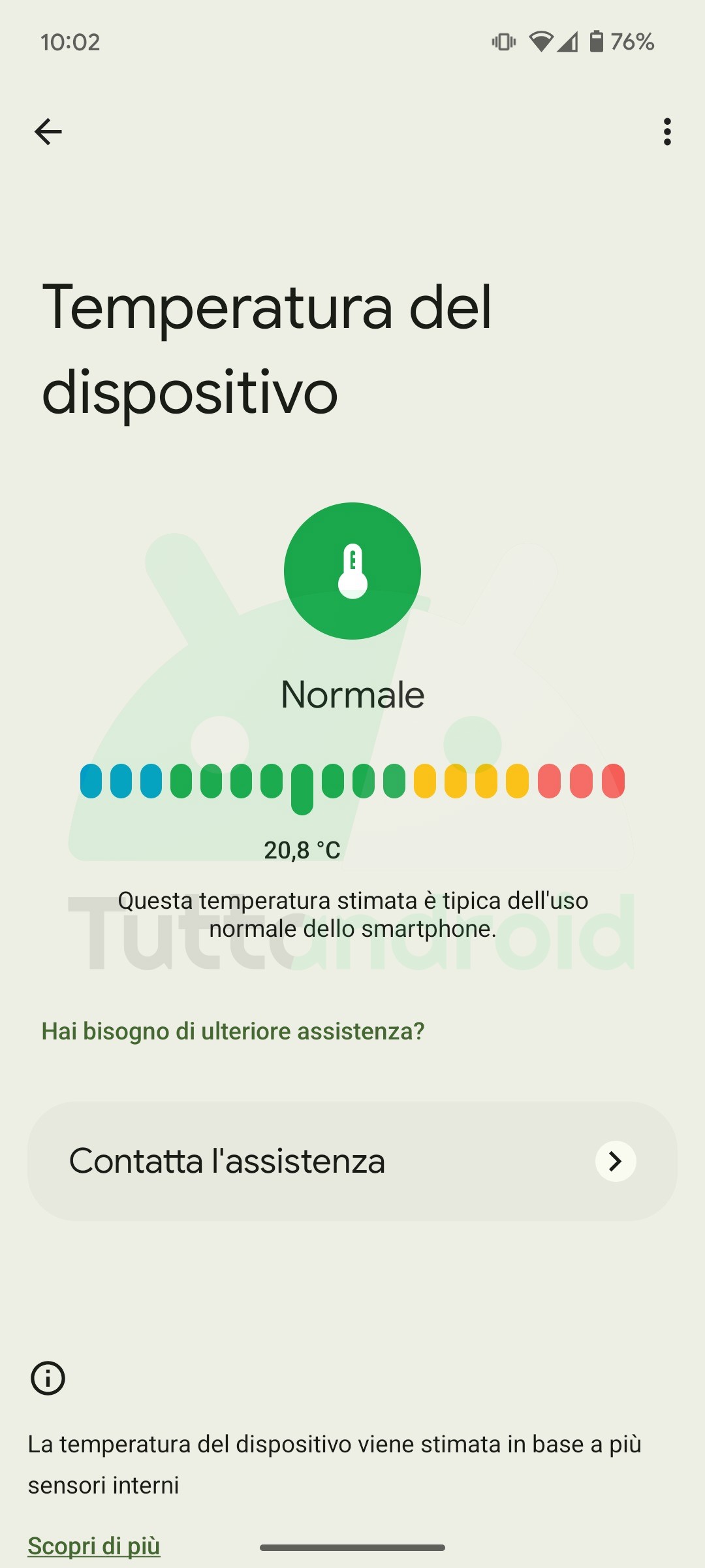 Per chi non la conoscesse, Pixel Troubleshooting è un’app che si occupa di effettuare la diagnostica del dispositivo per fornire all’utente una serie di indicazioni su come risolvere eventuali problemi; come anticipato in apertura, nelle ultime ore Google ha avviato la distribuzione di un nuovo aggiornamento tramite lo store ufficiale, grazie al quale è ora possibile controllare la temperatura dello smartphone.