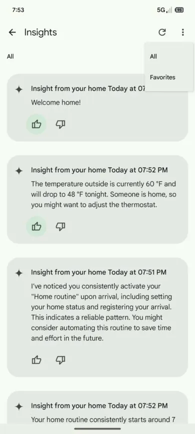 Inoltre, Google Home sembra prevedere un sistema in cui gli utenti possano valutare la qualità e l’utilità di questi suggerimenti, in modo da ricevere sia un’esperienza sempre più personalizzata, sia risposte migliori e più pertinenti. Proprio per questo gli utenti potrebbero avere la possibilità di filtrare i suggerimenti e visualizzare solo quelli che hanno contrassegnato come preferiti o particolarmente utili.