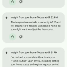 Con questa funzionalità Google Home fornirà suggerimenti personalizzati e feedback sulla qualità delle indicazioni fornite. Sembra infatti che attivando questa funzionalità Google Home analizzi l’interazione con i dispositivi della propria casa intelligente così da fornire consigli utili per migliorare l’esperienza d’uso (come suggerimenti per ottimizzare il consumo energetico o nuove automazioni).