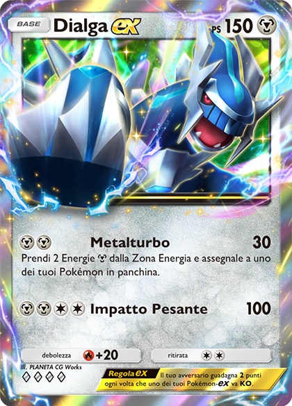 The Pokémon Company informa gli appassionati che i Pokémon leggendari della regione di Sinnoh Dialga e Palkia hanno distorto tempo e spazio per dare una nuova dimensione alle lotte come Pokémon-ex.