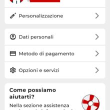 La sezione Profilo, invece, contiene i dati dell’account, permette di cambiare la linea telefonica (nel caso in cui abbiate più SIM/eSIM registrate con lo stesso account), consente di personalizzare l’avatar, di gestire i dati personali, i metodi di pagamento, le opzioni e i servizi, contiene l’assistenza e altre informative (quali Termini e condizioni).