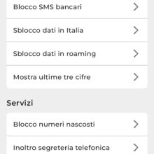La sezione SIM permette di consultare il credito residuo, il traffico disponibile (con suddivisione tra Italia e Estero) e, più in generale, le metriche collegate alla linea telefonica. Inoltre, è possibile consultare le offerte attive ed effettuare ricariche.