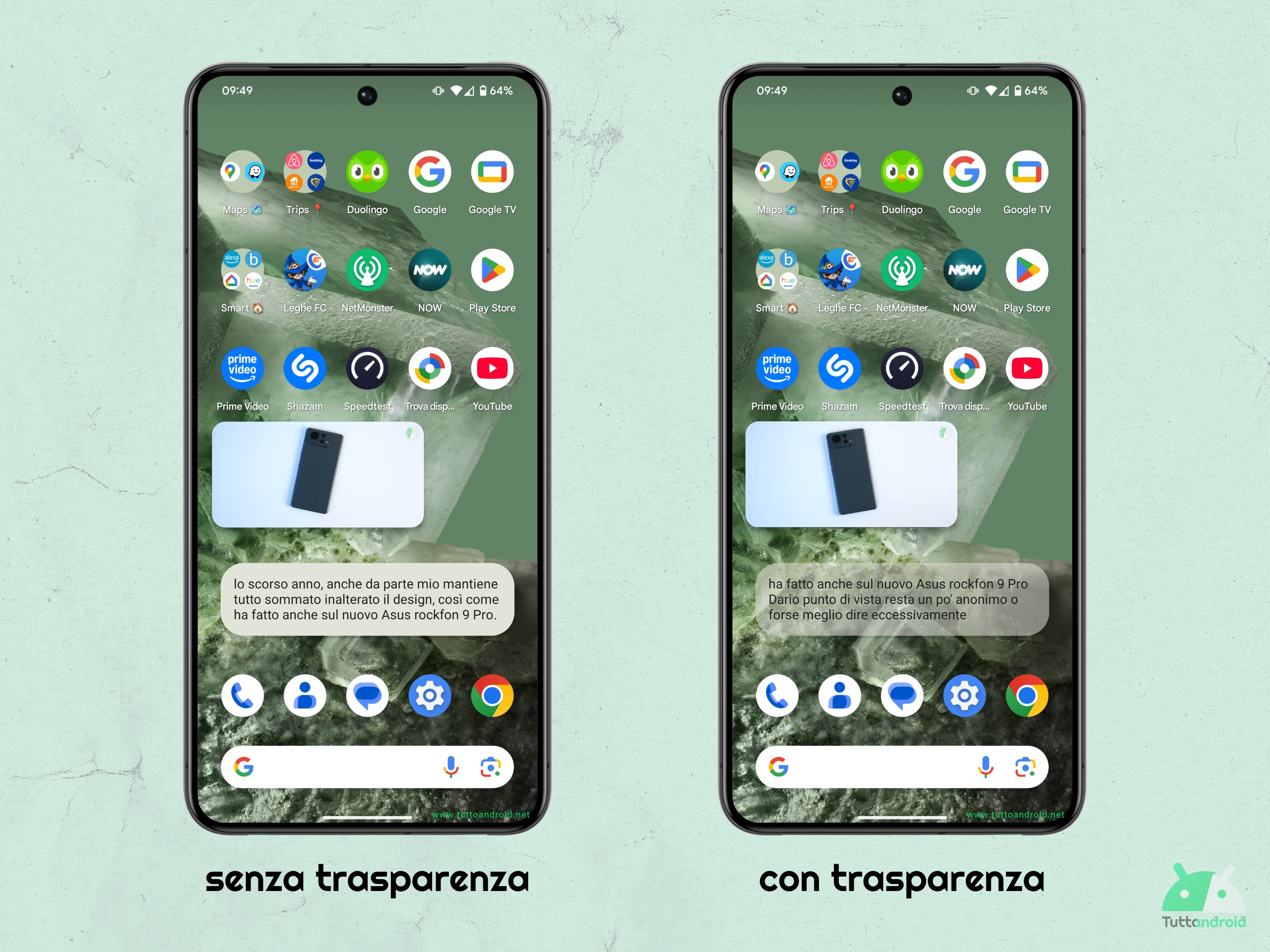 In precedenza, i sottotitoli venivano mostrati all’interno di “box” flottanti con sfondo solito, sia quando era impostato il tema chiaro, sia quando era impostato il tema scuro. Con l’arrivo di questa novità, abilitando la nuova opzione, i sottotitoli verranno mostrati all’interno di “box” flottanti con sfondo in trasparenza; il testo, invece, non viene reso trasparente.