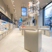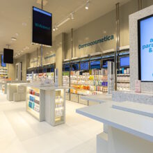 Il derma-bar è invece un’area dove i clienti possono effettuare gratuitamente l’analisi digitale delle propria pelle, sfruttando appositi strumenti tecnologici. Qui è possibile ricevere consigli da parte di esperti di bellezza sulla base del risultato, analizzare tipologia e condizioni della pelle e provare alcuni prodotti. All’interno del negozio è possibile anche acquistare farmaci da banco senza prescrizione medica, con la presenza di farmacisti per assistenza, informazioni e consulenza.
