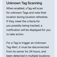 Con uTag è possibile configurare un Galaxy SmartTag2, visualizzarne la posizione, farlo suonare, personalizzarne il comportamento, cambiare suoneria e così via. Esattamente come l’app da cui “deriva”, avvisa se ci sono SmartTag sconosciuti che ci “seguono”, avvisa quando un tracker è stato trovato o lasciato indietro e consente la condivisione con i membri della famiglia; in più supporta la ricerca più precisa sui dispositivi dotato di connettività UWB, una funzione che la rete di Google ancora non supporta.
