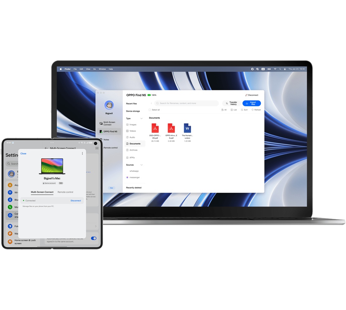 In tal senso, con OPPO Find N5 debuttano altre due interessanti funzionalità della suite O+ Connect for Mac che, stavolta, donano allo smartphone una connessione senza soluzione di continuità con i computer Mac: