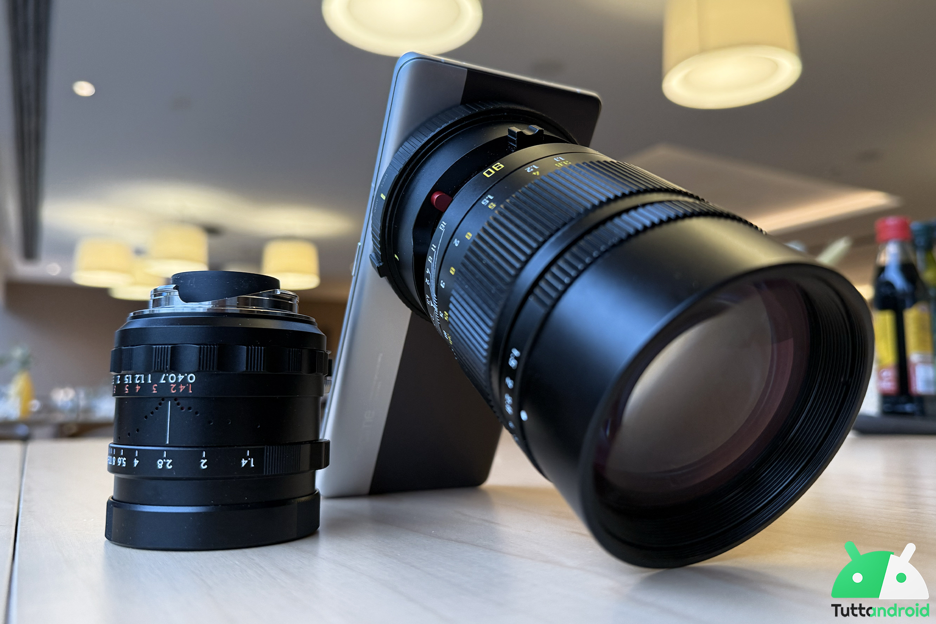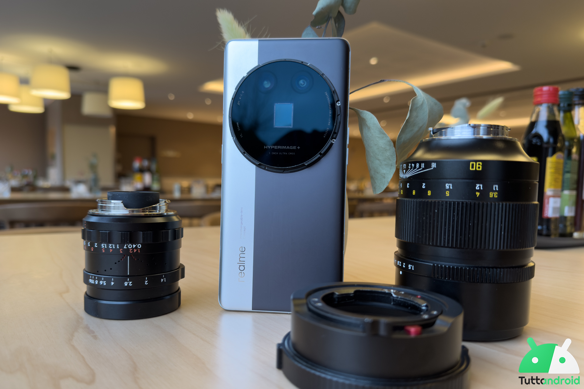 Al comparto fotografico possono essere agganciati obiettivi di terze parti grazie alla presenza dell’attacco Leica M. Il produttore cinese ha mostrato Realme Ultra con un “kit” composto da due diversi obiettivi (che mettono a disposizione controlli manuali per apertura e messa a fuoco):