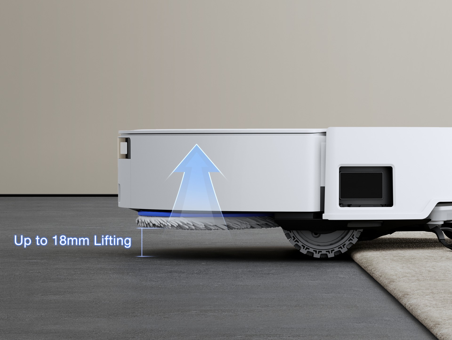 I panni rotanti possono essere rialzati i ben 18 millimetri, così da poter pulire anche i tappeti a pelo medio senza bagnarli, e tornare alla stazione di ricarica senza lasciare tracce umide dietro di sé. A proposito di soglie, il robot può superare agevolmente piccoli dislivelli fino a 22 millimetri, così da entrare anche in quelle stanze dove ci sono delle piccole differenze di altezza dei pavimenti.