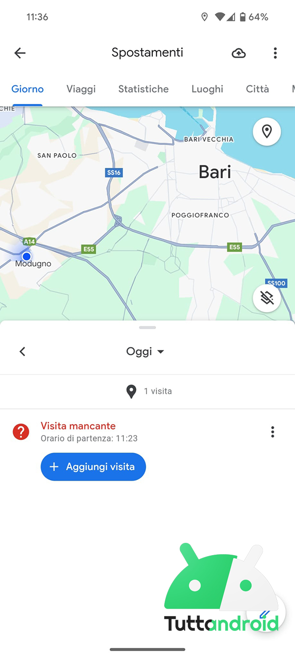 Nel messaggio, Google spiega che è possibile ripristinare la cronologia degli Spostamenti importando un backup eseguito precedentemente. Per farlo, dovete aggiornare Google Maps all’ultima versione, entrare nella sezione degli Spostamenti accessibile cliccando sulla propria immagine del profilo in alto a destra e successivamente cliccare sull’icona della nuvola presente in alto.