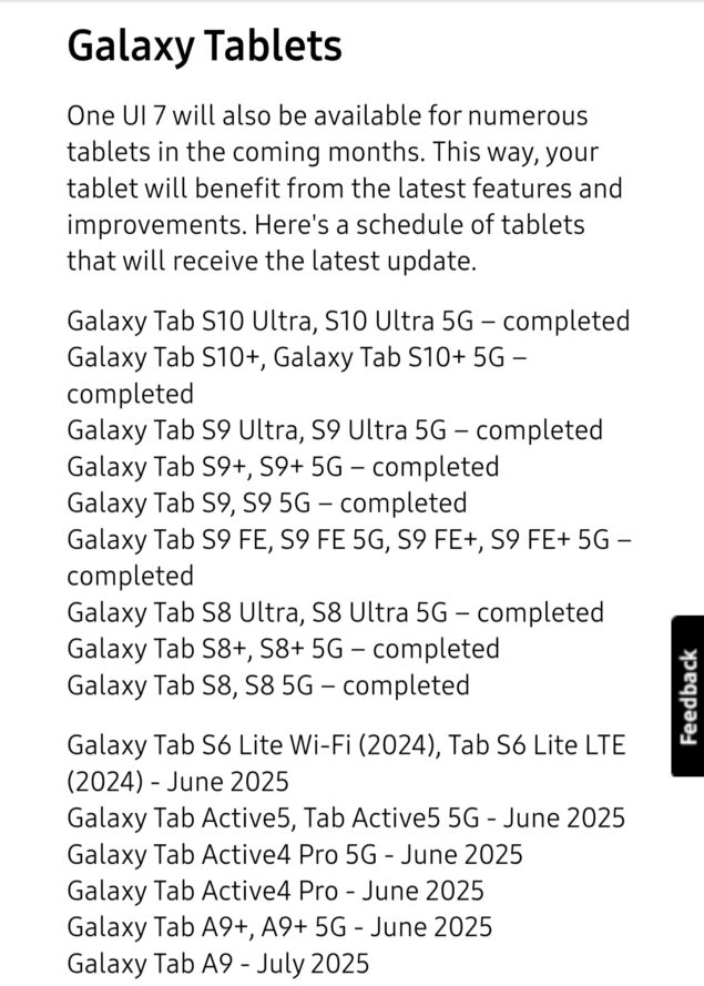 Come si può evincere dalla prima delle due immagini, il post completo contiene anche tutti i tablet e tutti gli smartphone di Samsung che hanno già ricevuto la One UI 7: già solo guardando i tablet, gli unici “visibili” tra i dispositivi aggiornati, possiamo comunque notare che Samsung abbia effettivamente recuperato gran parte del terreno perso nei mesi scorsi.