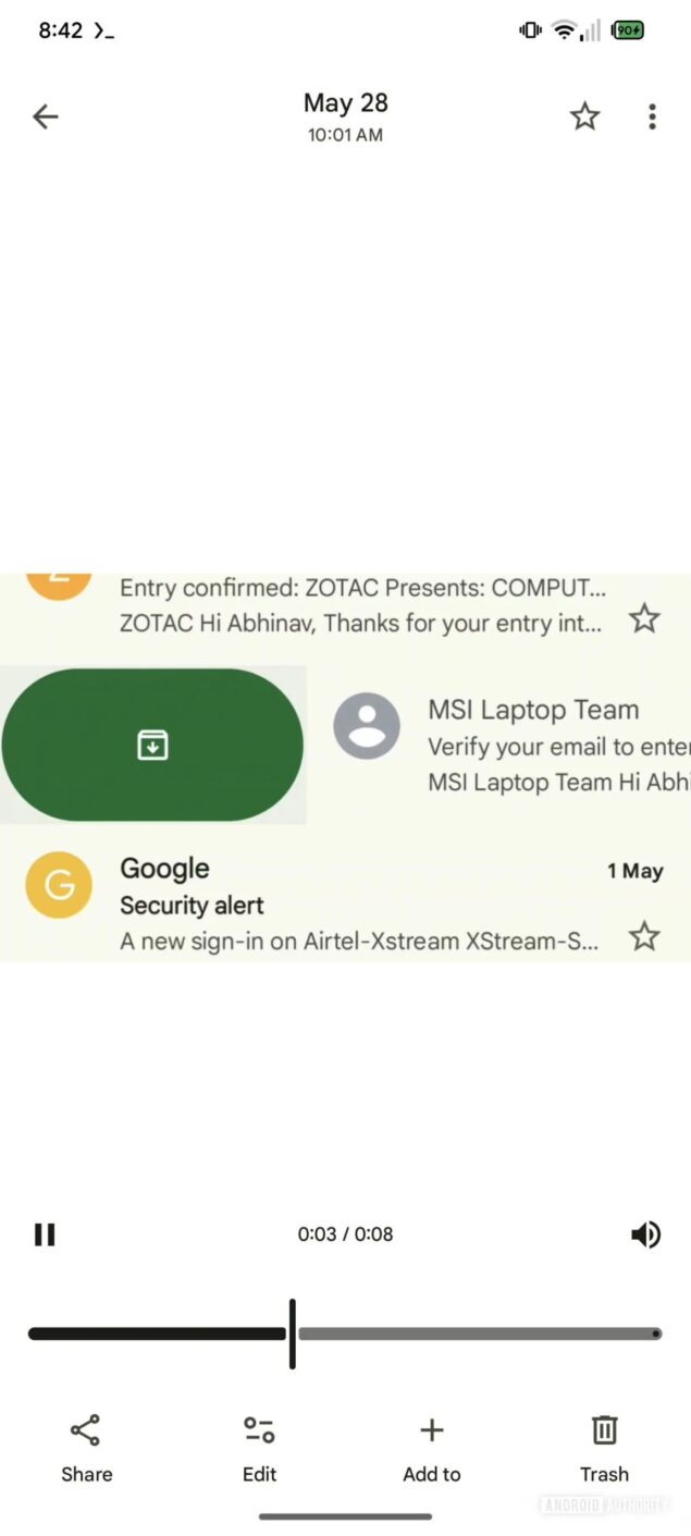 Il cambiamento più appariscente riguarda la timeline, ora decisamente più visibile e funzionale, arricchita da una barra verticale che fa da guida all’icona di scorrimento e dalla visualizzazione della durata dei video posizionata direttamente sopra; non manca poi il set di controlli multimediali (pausa, volume, ecc.) ben più accessibili rispetto al passato, con l’arrivo del nuovo pulsante Aggiungi a che si affianca ai già noti Condividi, Modifica e Cestino.