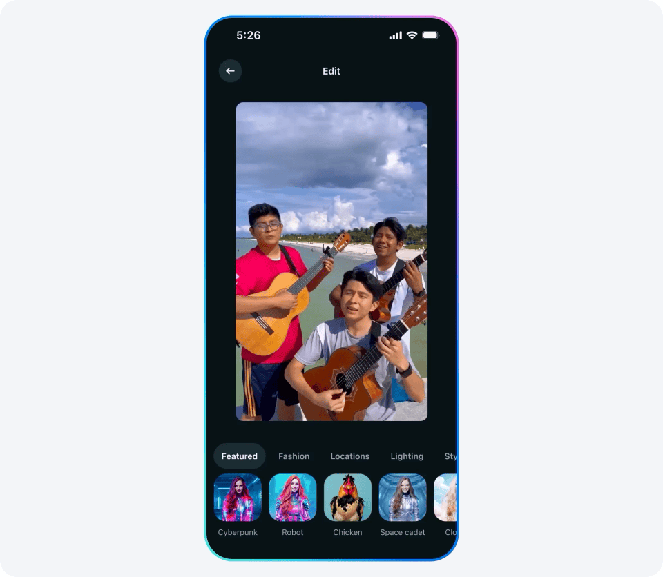 La nuova funzionalità consente di trasformare un breve video (fino a 10 secondi, gratuitamente e per un periodo limitato) scegliendo tra oltre 50 prompt di editing IA preimpostati; outfit, ambientazione, illuminazione, stile visivo e atmosfera generale, tutto può essere modificato con pochi tap, senza bisogno di software complessi o competenze video da editor.