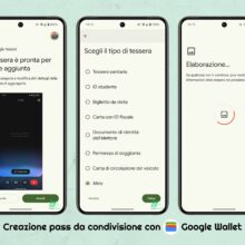 Dal foglio di condivisione che si apre quando selezioniamo un’immagine, basterà effettuare un tap su Google Wallet e selezionare Avanti. A questo punto partirà la procedura di creazione della tessera personalizzata: dovremo selezionare il tipo di tessera da un elenco di opzioni (c’è anche Altro nel caso in cui il pass non soddisfi nessuna delle opzioni proposte) e selezionare Salva. A questo punto partirà il processo di elaborazione.