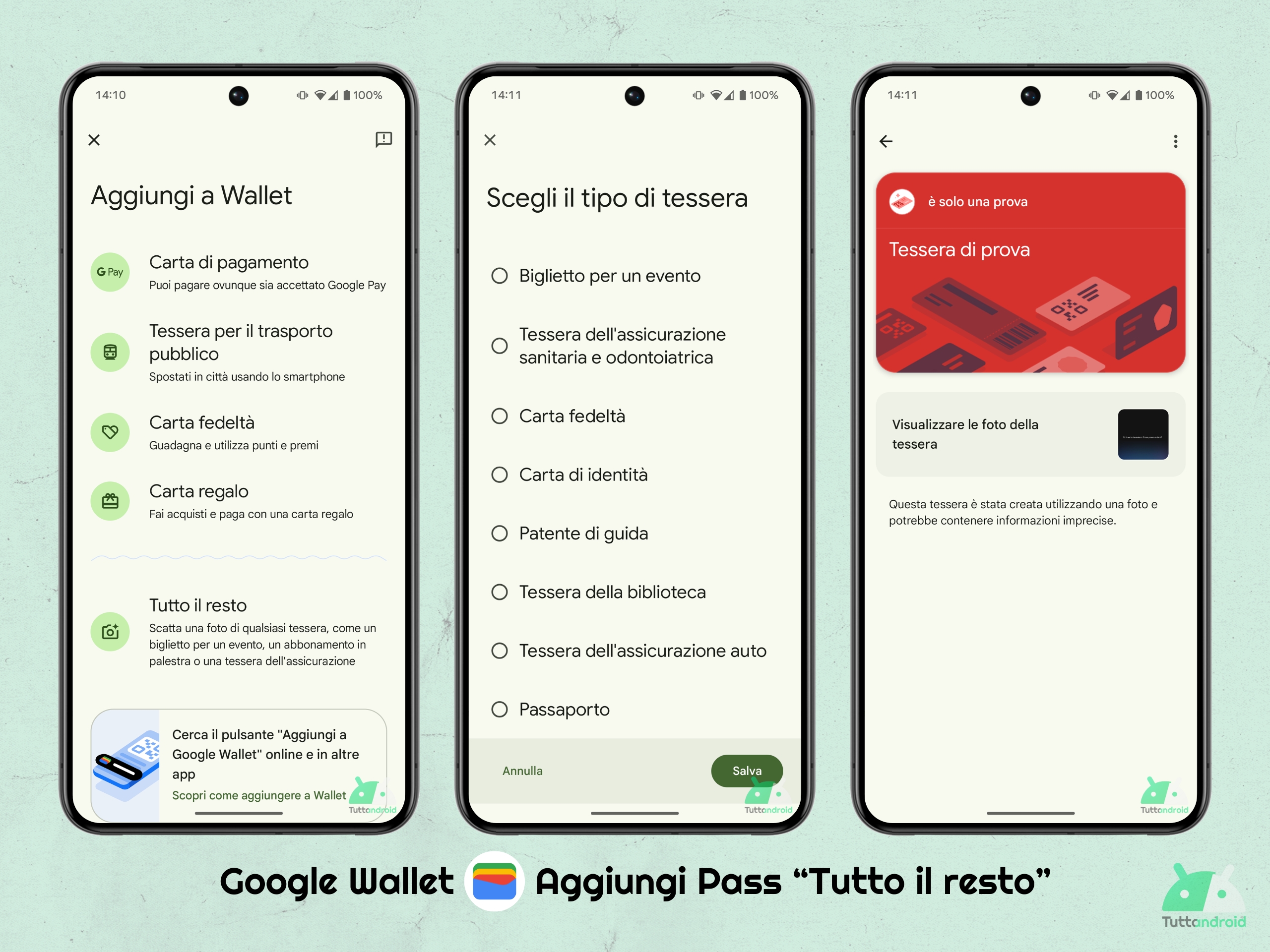 Fino ad ora, la procedura di aggiunta di un pass personalizzato al portafoglio digitale Made by Google si poteva effettuare esclusivamente dal pulsante Aggiungi a Wallet, selezionando la voce Tutto il resto e seguendo poi la procedura.