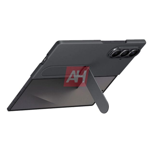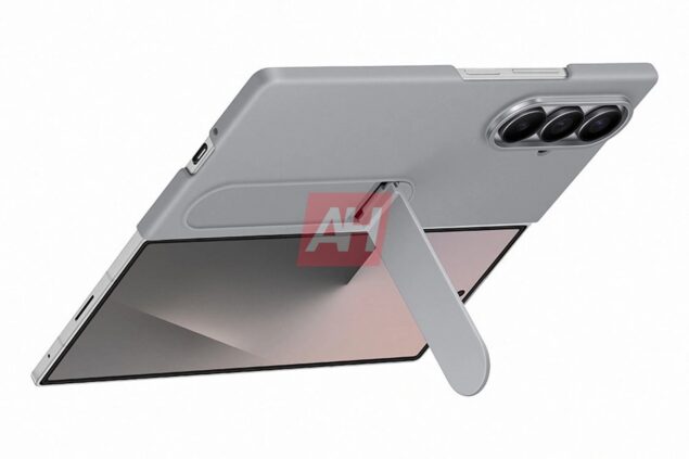 Non mancherà di sicuro la cover in silicone, proposta in nero, blu, grigio e verde chiaro (anche se non è chiara la colorazione dello smartphone che la indossa). Si tratta della soluzione più spartana tra quelle che verranno proposte anche se Samsung ha integrato un cavalletto per posizionare Samsung Galaxy Z Fold7 inclinato. Il prezzo previsto è di 69 euro.