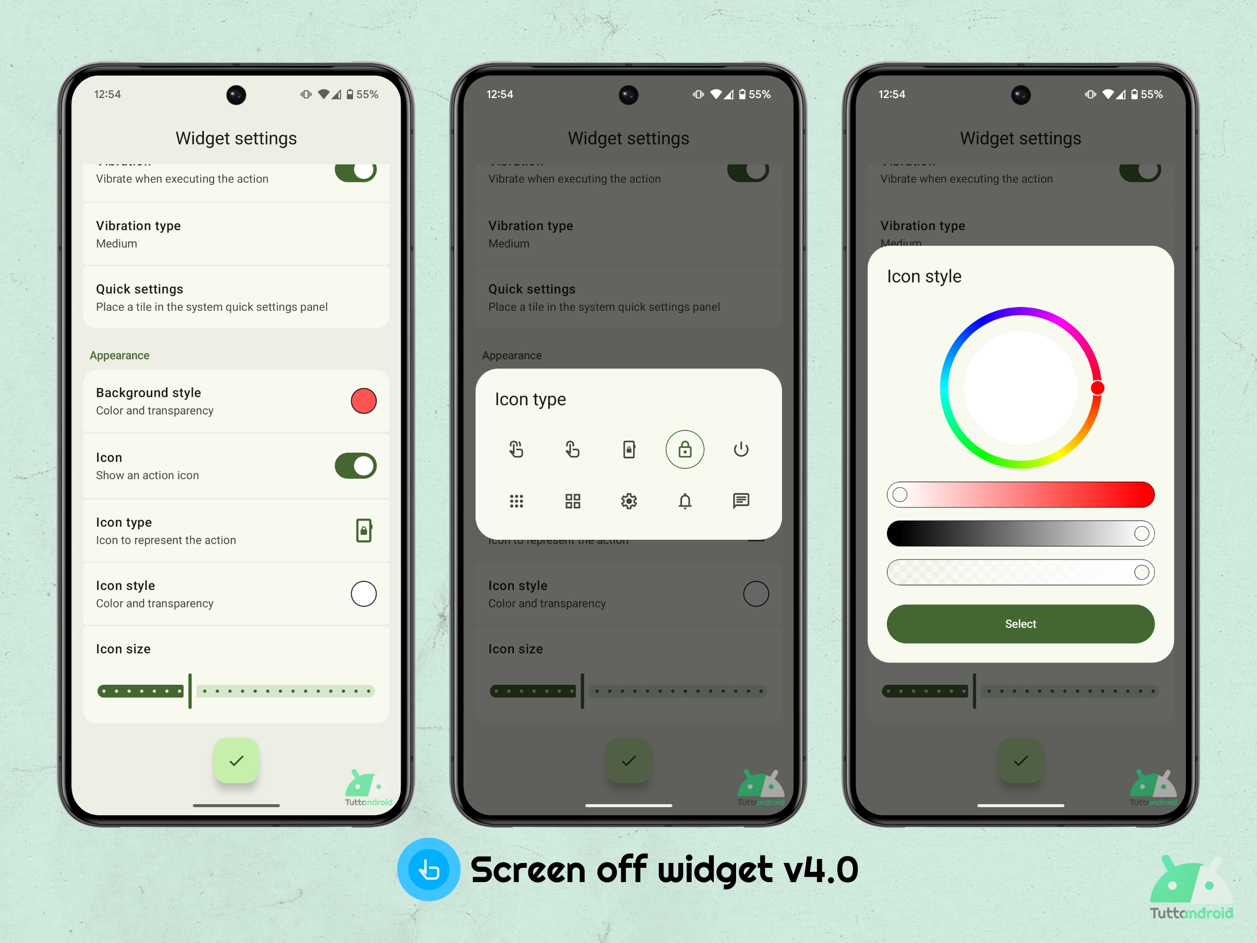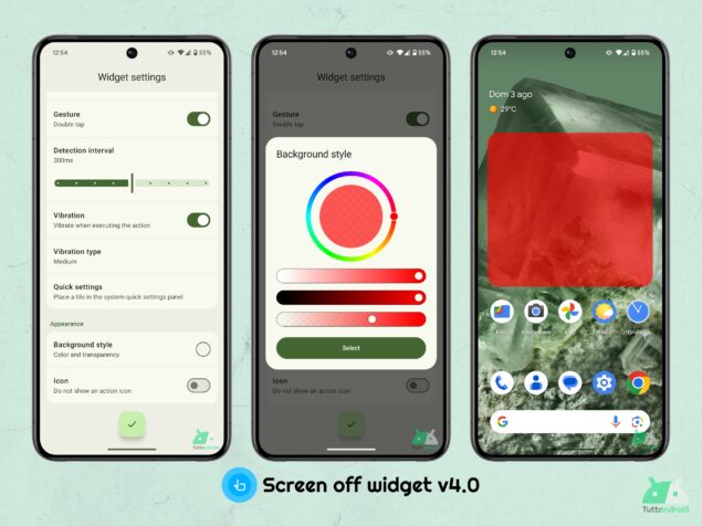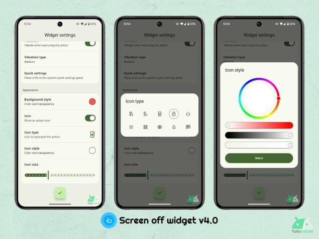 Come avrete già notato dalla precedente immagine, c’è poi spazio per l’implementazione di una grande quantità di opzioni di personalizzazione. Di fatto, il widget può ora essere personalizzato per andare oltre rispetto al semplice spegnimento dello schermo.